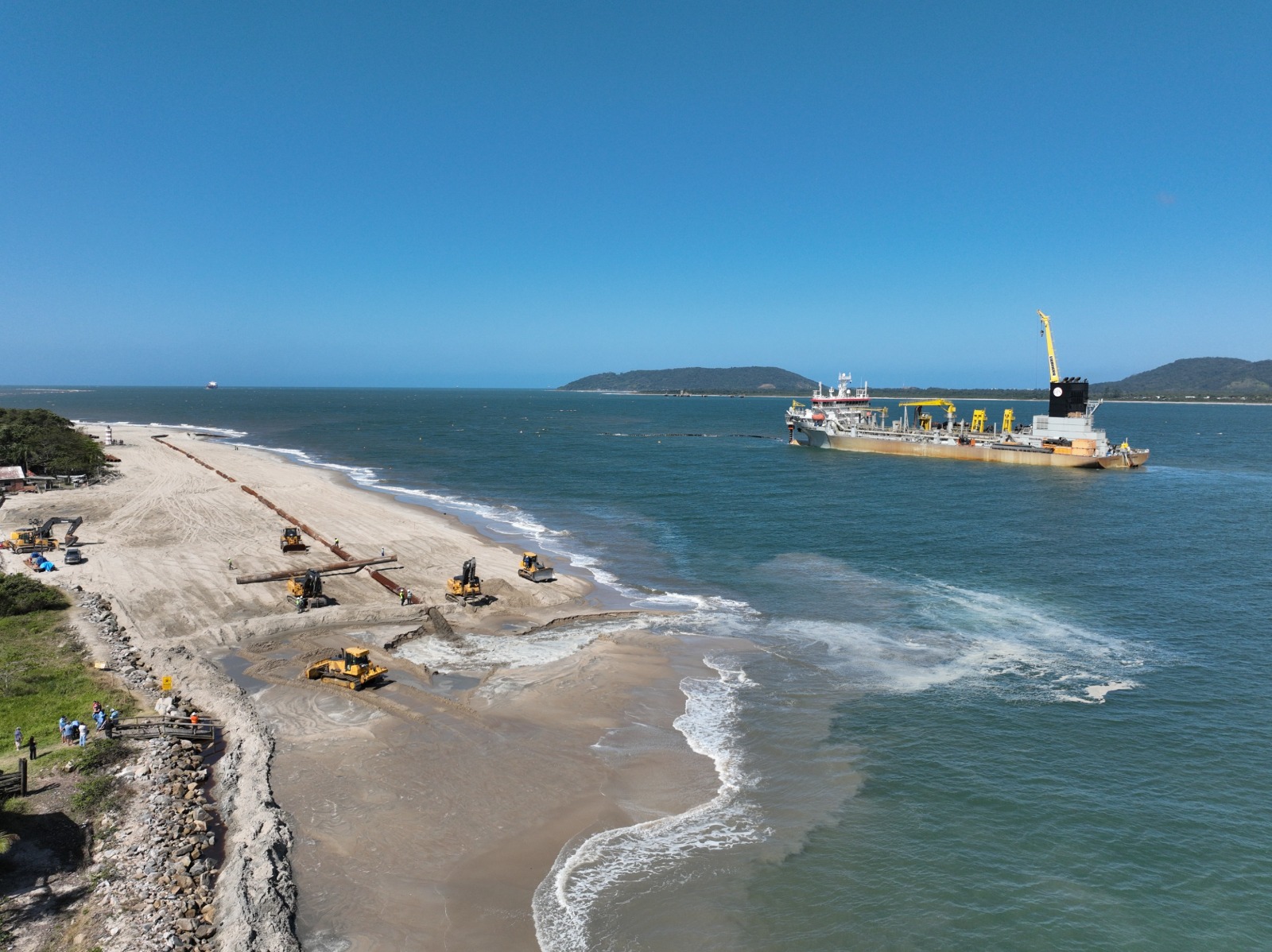 É também a primeira vez no país que os sedimentos de uma dragagem portuária são reaproveitados para fins de recuperação costeira, estabelecendo um novo modelo de sustentabilidade e integração entre os setores portuário e ambiental, com potencial para ser adotado em outros portos brasileiros.