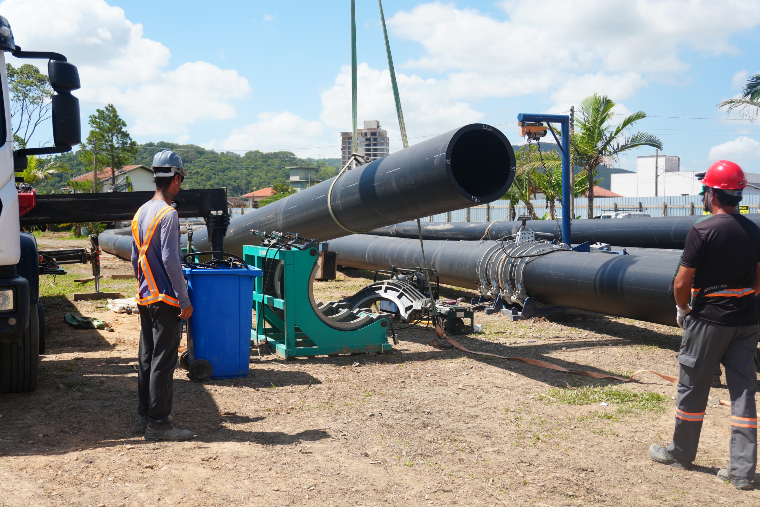 Balneário Piçarras está cada vez mais próxima do início da megaobra de alargamento da faixa de areia, que irá transformar a infraestrutura da orla e impulsionar o turismo no município. A empresa vencedora da licitação, DTA Engenharia, avança nos trabalhos iniciais de montagem e soldagem da tubulação no canteiro de obras instalado nas proximidades da Praia da Barra.